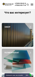 | AI-анализ | The website KOLESIK.BY is a supplier of roofing and fencing materials in Belarus. The company OOO Kolesik is the largest provider of profiled metal, metal tiling, metal fencing, mesh rabbit fencing, metal profiles, polycarbonate, greenhouses, and metalwork. The company sells its products throughout the Republic of Belarus. The website's top content includes metal profiles for fencing, fencing, mesh rabbit fencing, polycarbonate, and components for greenhouses, metalwork, metal tiling for roofs, and European fencing, gates, and hinges. The website also offers delivery and payment options. The company has been in business for over 5 years and is known for its reliability and stability, fulfilling its obligations to clients and partners. The main principle of the company is to form partnership relationships with |