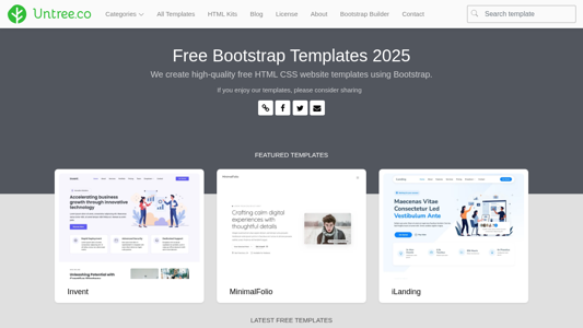| AI-анализ | This online resource, Untree.co, is a platform providing a collection of free Bootstrap templates in various categories. The title of the website is "Free Bootstrap Templates 2022 - Untree." The description mentions that Untree creates high-quality templates using Bootstrap and encourages visitors to share the website. The top words indicate that the website is primarily focused on free Bootstrap templates, with categories including Agency, Architects, Blog, Bootstrap 4, and Bootstrap 5. The website offers templates for Business, Charity / Non-profit, Church, eCommerce, Education, Featured, Finance, Food / Drinks, Hotel, Interior Design, Medical, Onepage, Personal, Photography, Portfolio, Real Estate, Restaurant, Startup, and Transportation. Each template has a demo and a free download option. The templates cover various industries and designs such |