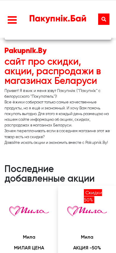 | Название / Заголовок | Акции, скидки в магазинах Беларуси - Pakupnik.By |