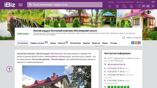 | AI-анализ | This website is for an organized hunting complex, called "Lesной Kordon," part of the Mogilevsky Leshoz, located in the Dribin District of Belarus, in the village of Malaya Rusenka, 27 km from Mogilev. The complex offers hunting tours, organization of hunting, winter лыжные гонки (cross-country skiing) competitions, and various events, including corporate events, celebrations, and jubilees. The complex also features a Russian banya (sauna) heated by wood. The website includes sections for company information, products and services, news, announcements, vacancies, videos, and reviews. |