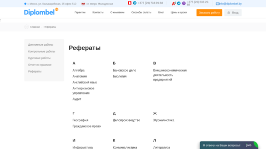 | AI-анализ | This online resource specializes in the writing and sale of academic papers, specifically referred to as "рефераты" in Russian. The title of the website, "Написание реферата на заказ онлайн с гарантией качества" (Writing a referee paper online with a quality guarantee), reflects this focus. Users can fill out a mini-questionnaire on the website to indicate their specifications for the paper, including their gender, age, form of education, course of study, session time, and date. The website also provides a calendar with options for various dates and days of the week. The domain name for this website is "referaty.diplombel.by". |