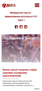 | AI-анализ | The web project "Белорусская научно-промышленная ассоциация" (BNPA) is the official website of the Belarusian Scientific-Industrial Association. The site offers news, blog articles, and information on association membership, activities, and structure. Keywords associated with the website include "БНПА," "подробнее," "ассоциация," "главная," "поддержки," "РСПП," "роо," "читать," and "новости." The site features sections on the association's activities, leadership, and reports, as well as sections on the Uстав, Structure, and Contacts. The content covers topics such as government consultations, business survival, tax changes, and international partnerships. The site has a blog and includes various multimedia content, such as |