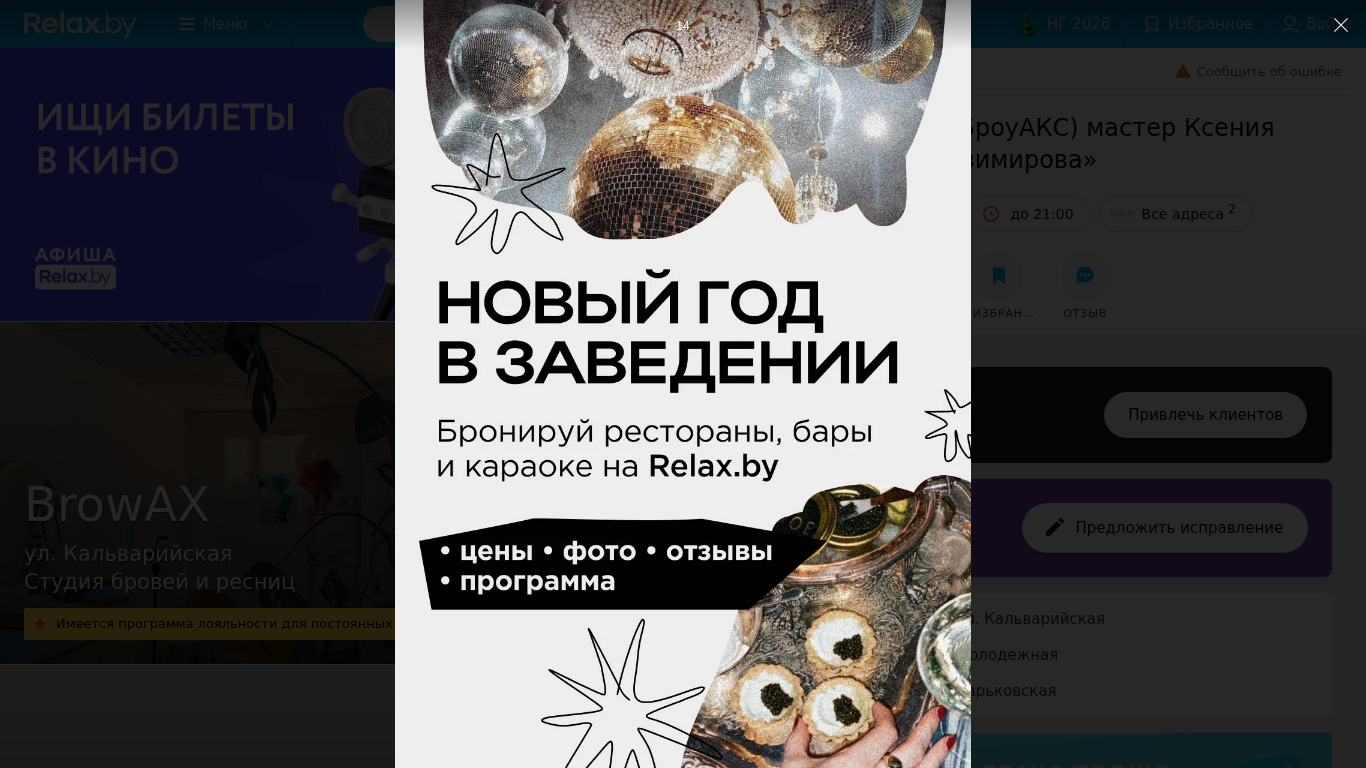| Название / Заголовок | BrowAX (БроуАКС) мастер Ксения Бельник-Казимирова студия бровей Минск – отзывы, адреса и телефоны |