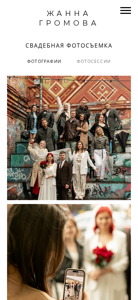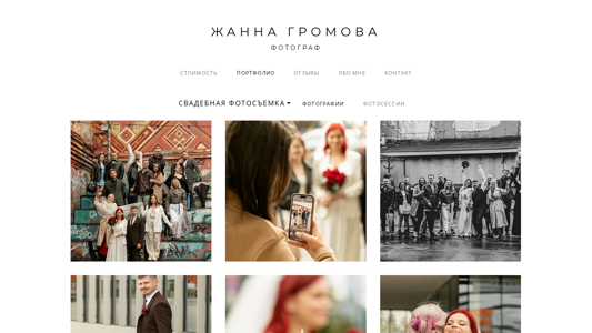 | AI-анализ | The portal is a photography studio website by photographer Жанна Громова, offering various types of photo sessions including wedding, love story, family, children, and portrait photography. The website presents a portfolio showcasing individual and personalized photo sessions for expectant mothers, events, and promotional shoots, with a collection of over 50,000 images available for viewing. The studio's pricing and contact information are not provided in the given data. |