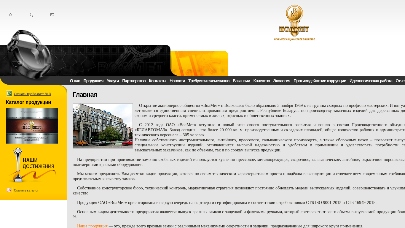 | Название / Заголовок | ВОЛМЕТ — Производство замков / Главная |