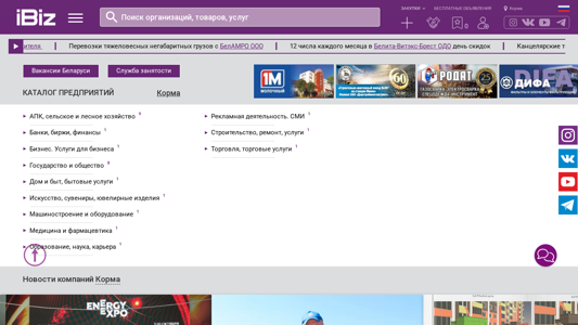 | Название / Заголовок | Корма - каталог организаций и предприятий | iBiz.by |