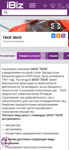 | AI-анализ | The web project "ТАСК ЗАСО - Страховая компания.." is a Belarusian insurance company located at 220068, Минск, , Червякова, 46. The website offers a map for navigation, contact phone numbers, and the company's address. The company, founded in 1991, has a solid reputation in the industry, known for its extensive range of services and competitive pricing. TASK ZASO provides over 30 types of insurance, both mandatory and voluntary, for individuals and corporations. The company prioritizes automobile insurance and insurance for property. Individuals can insure their assets, vehicles, and obtain medical insurance through TASK ZASO. Corporations have access to transportation insurance, health insurance, finances, property insurance, and liability insurance. The staff consists of experienced professionals who provide detailed and |
