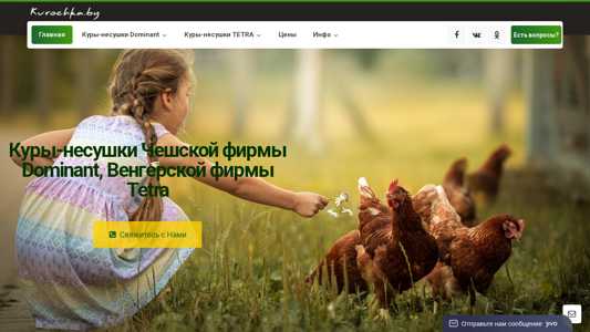 | AI-анализ | The website is a poultry farm named "Xtra Construction" that specializes in the production and sale of Pekin ducks, layer hens of the Dominant breed from the Czech company Dominant, as well as the slaughterhouse and hatchery. The homepage contains information about the Dominant layer hens, their sale, and brochures for various Dominant and Tetra breeds. The website also features information about the prices, contact details, and a map for visiting the farm. There are sections for the sale of laying hens, broilers, and meat chickens, as well as links to brochures and contact details. The site also mentions an ongoing autumn sale of young laying hens from Czech and Hungarian lines, Dominant and Tetra, at a price of 15 rubles per head, and young roosters at 3 rubles each. The |