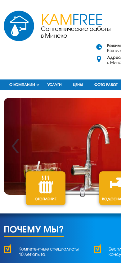 | SEO-описание | Сантехнические работы в Минске выполняем на высшем уровне: ❶ Отопление ❷ Водоснабжение ❸ Канализация. Качество - 100% ✔ Даем гарантию ➤ Звоните!☎ |