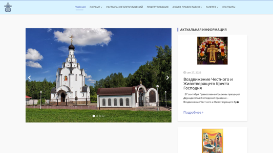 | AI-анализ | --- This website belongs to the Orthodox Christian Church's parish of the icon of the Mother of God 'Vzyskanie Pohibykh' in Belarus. The site provides information about the church, its history, relics, clergy, community life, brotherhood, sisterhood, Sunday school, choir, library, pilgrimages, and various support groups. It also offers a schedule of religious services, a donation page, an alphabet of Orthodoxy, rules for behavior in church, and texts of liturgies. The site contains news about current week's services, and contact information. Currently, the site announces upcoming events such as the Feast of the Exaltation of the Cross on September 27 and the Nativity of the Mother of God on September 21. |
