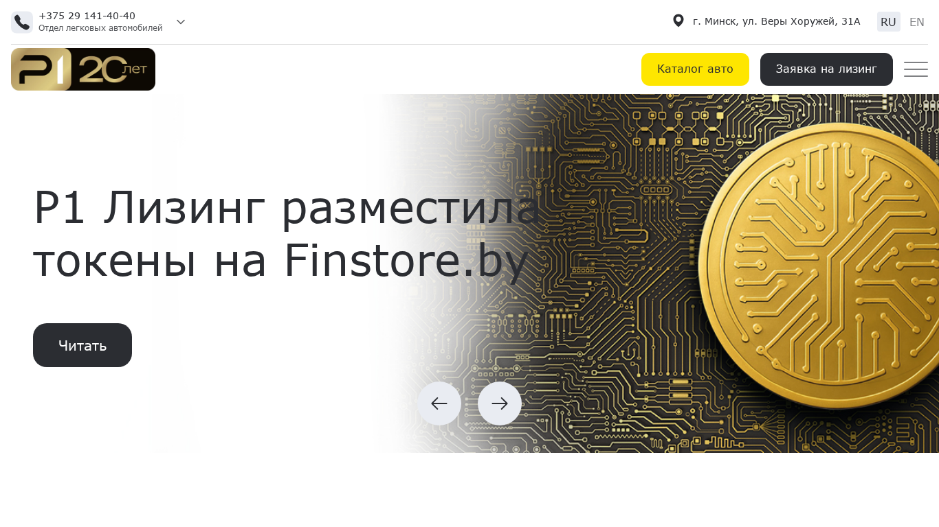 | SEO-описание | Ищете лизинговую компанию в Беларуси ✔️? Р1 Лизинг в Минске предлагает выгодные условия лизинга для физических и юридических лиц ◼. Обратитесь к нам, чтобы получить подробную информацию о наших услугах ◻! |