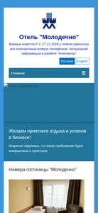 | AI-анализ | The web project "Hotel Mолодечно" - Important news!!! As of 27.11.2024, all contact phone numbers for Hotel Молодечно have changed. Current information can be found in the "Contacts" section. This Russian-language website for Hotel Молодечно includes menus for "About the Hotel," "Articles," "Services," "Living Rules," and "Contacts." The main page highlights the hotel's history and its central location in Mолодечно, Belarus, with easy access to cultural, sports, and administrative facilities. Accommodation options include single and double standard rooms, as well as twin, double comfort, and enhanced twin rooms. There are also two-bedroom apartments. The hotel has undergone numerous changes while preserving its unique character and high standards of service. The website includes information on the hotel's history |