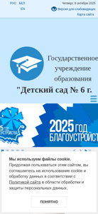 | AI-анализ | This website belongs to a kindergarten in the city of Gorki, Belarus, as indicated by its title "Детский сад № 6 г. Горки" (Children's kindergarten No. 6 in Gorki). The description contains no additional information. The most frequent keywords are related to the kindergarten and its location, including "детский сад" (children's kindergarten), "горки" (Gorki), and "учреждения образования" (educational institutions). Other keywords suggest that the website may contain news and recommendations, as well as information about various ethnic groups and languages. However, without further context, it is unclear what specific content is available on the site. |