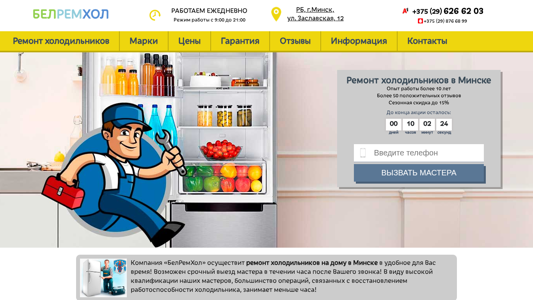 | Название / Заголовок | Цены на ремонт холодильников в Минске на дому снижены до 15% | БелРемХол |
