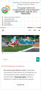 | AI-анализ | <aside> This website is for the state educational institution "Detsky Sad No. 13 g.Minsk" located in Minsk, Belarus, at pr.Partizansky 69b. The website includes information about the kindergarten's administration, contact details, a map of the site, working hours, and administrative procedures. It also offers electronic services through the state information system, and provides information on various topics such as disability assistance, the organization's history, and healthy living. The site includes sections for parents, teachers, and a pedagogical council, as well as a news archive and a contact page. The domain is registered under minsk.edu.by. |