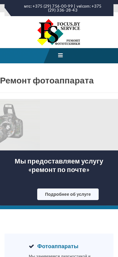 | SEO-описание | Специализированная мастерская по ремонту фототехники. |