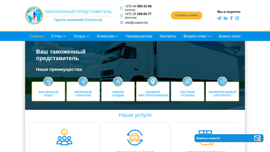 | SEO-описание | custom.by - таможенный брокер или представитель в РБ вот уже 30 лет. Наше таможенное агентство - это опыт и репутация, лучше в Беларуси не найдешь! |