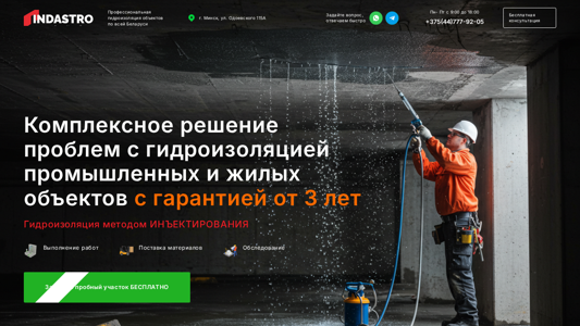 | AI-анализ | --- The website inject.by is a professional platform dedicated to providing hydraulic insulation services in Belarus, with a focus on the city of Minsk, located at ul. Odoevskogo 115A. The site offers a quick response to customer inquiries from Monday to Friday, 9:00-18:00, and provides a free consultation. The company offers comprehensive solutions for industrial and residential objects, with a guarantee of three years. The hydraulic insulation is performed using the injection method, and the site lists various types of objects where this solution is effective, including underground garages and parking lots, basements, foundations, and reservoirs. The site also offers services for reinforcing foundations and improving soil quality. The catalog section includes prices for various services and products. The company is confident in the high quality of its work and offers a three |