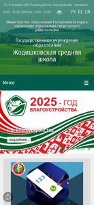 | AI-анализ | The web project "Жодишковская средняя школа" (sch-zhodishki.smorgon-edu.gov.by) is a state educational institution in Belarus. The title of the website is "Жодишковская средняя школа" (Jodyshkovskaya Srednyaya Shkola), and it is operated under the Ministry of Education of the Republic of Belarus, with Smorgon Regional Executive Committee in charge. The school's regime includes classes from Monday to Friday, 8:00-16:30, and Saturdays from 8:00-13:00. The website provides information about the institution, including its leadership, pedagogical staff, and policies on innovation, safety, and admissions for students. Visitors can also find details about various educational programs, paid services, and |