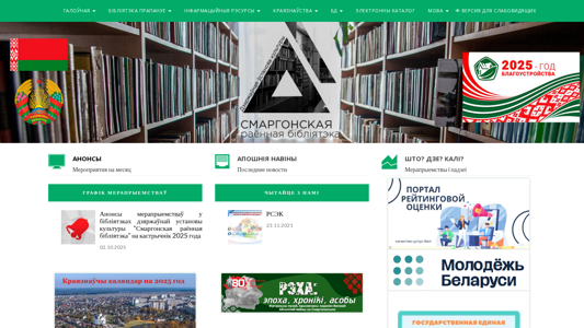 | AI-анализ | The website "Дзяржаўная ўстанова культуры 'Смаргонская раённая бібліятэка' (State Cultural Institution 'Smargon District Library') is primarily focused on providing information and resources related to the library, its services, and events. The keywords indicate that the website offers a catalog, news, announcements, and information about the library's administration, history, structure, rules of use, and services in various languages (Russian, English, and Chinese). The website also features virtual exhibitions, literary works about Smargon, and an electronic catalog. The title suggests that it is a library based in Smargon, Belarus, and the top_words indicate that it is a regional library. The website appears to offer announcements and news for October 2025, including an event at a castle on October 2, 2 |
