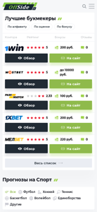 | AI-анализ | The portal Offside.by is a sports prediction website primarily focusing on football, hockey, basketball, tennis, and e-sports. It offers various strategies, rankings, and reviews of bookmakers, as well as bonuses and promotional codes. Users can find betting predictions for multiple sports, including football matches between "Металлург" and "Авангард," Chelsea and Tottenham, and "Динамо" Minsk vs. CSKA. The website also lists upcoming events in football, such as Chelsea – Tottenham on April 3, 2025, and Fenerbahçe vs. Galatasaray on May 27, 2023. Additionally, it provides odds for matches like Arau vs. Luzerne KF and Sevilla vs. Real Madrid CF. |