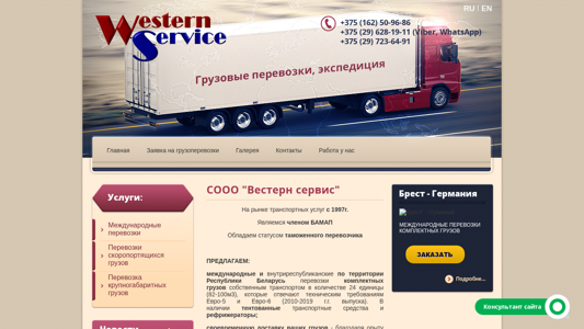 | Название / Заголовок | СООО Вестерн сервис - Международные перевозки грузов - FTL |
