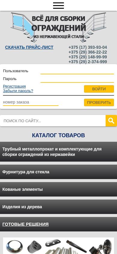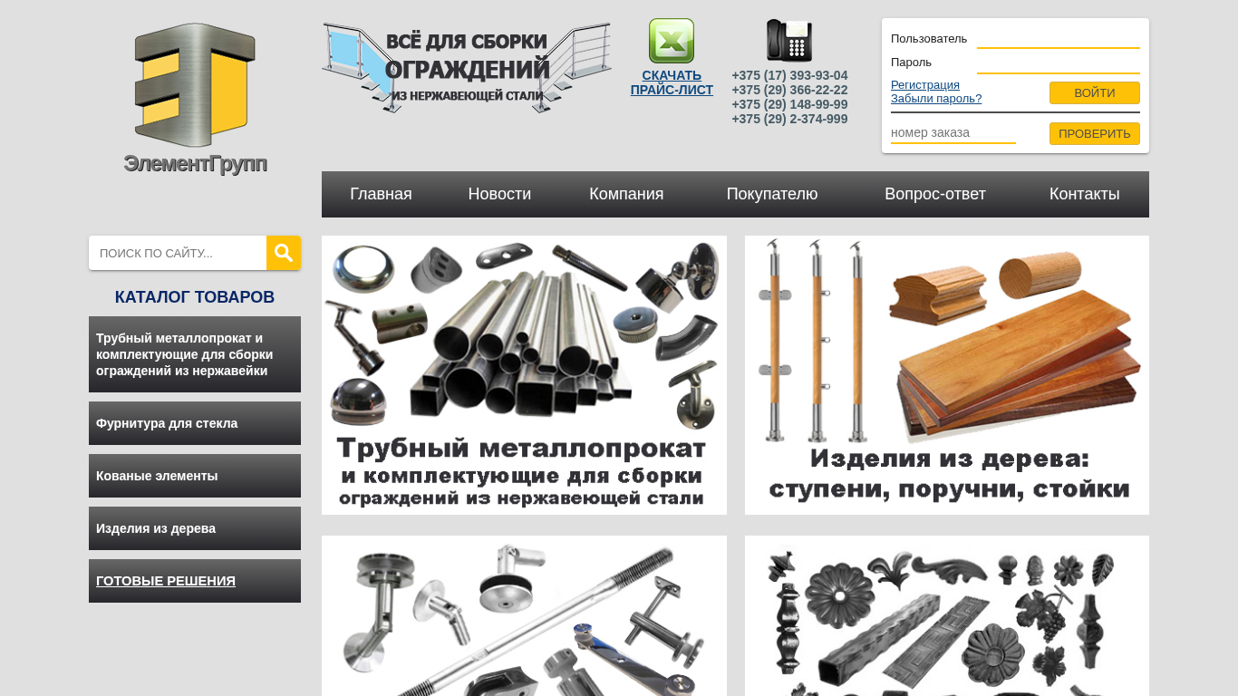 | AI-анализ | This website, titled "ЭлементГрупп - Элементы для металлоконструкций" (Elements Group - Elements for Metal Constructions), is a Belarusian domain dedicated to selling components for metal structures. The description mentions various types of elements, including those for ogradings, decorative ones, and those for transport and storage of non-ferrous metals. The company offers a price list and contact information, including phone numbers and a user registration page with a password feature. The homepage includes a menu with sections for news, company information, ready-made solutions, and a catalog of products. The catalog covers various types of tubular metal profiles and fittings for metal structures, as well as decorative items made of metal and wood. Some products are available with laser-cut designs. The company also offers a three-month payment plan using the Halka credit card from |