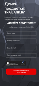 | AI-анализ | The web project "THAILAND.BY" is an official website for the .BY top-level domain name "THAILAND.BY". The website contains information related to the domain name for sale, with keywords including "THAILAND", "домен", "продажа", "платежа", "месяцев", "рассрочка", "аренда", "месяц", "право", "выкупа", and "сообщение". The website states that the domain name is for sale, with the option for a six-month payment plan or domain rent for 20 US dollars per month, including the right to buy. Users can submit offers and messages to the domain owner through the provided contact information. The website also offers simple and understandable domain names for businesses and provides contact details for further inquiries. |