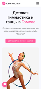 | AI-анализ | This website is for the sports club "Protea" in Homel, Belarus, offering professional training in artistic gymnastics and dancing for children aged between 4 and 14 years old. The website includes details on experienced trainers, modern equipment, convenient schedules, and a free trial class. The club has two main areas of focus, gymnastics and dancing, and boasts over 100 satisfied students. The trainers are experienced professionals with many years of experience working with children. For instance, Elisaveta Selutina, a Master of Sport in artistic gymnastics, has over 6 years of experience and has participated in numerous competitions, including being a member of the Belarusian national team and a prize winner of various championships and cups. The club's schedule is available, with classes offered multiple times a week and group sizes limited to 15 |