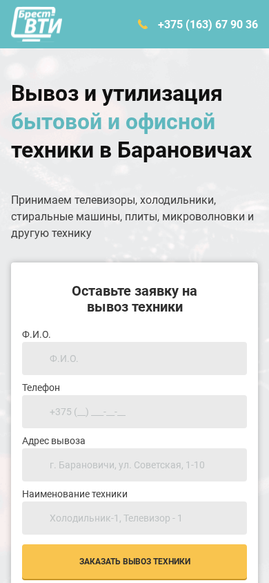 | Название / Заголовок | БРЕСТ-ВТИ - Вывоз и утилизация бытовой техники в г. Барановичи |