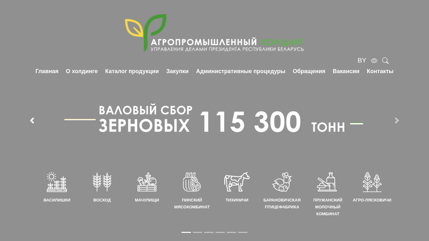 | AI-анализ | The website is an agricultural holding company based in Belarus, with a title "Агропромышленный холдинг" and keywords related to agriculture, Belarus, and management. The website includes information about the company, a catalog of products, procurement, administrative procedures, vacancies, and contacts. News sections cover events such as seminars, exhibitions, and product presentations. The company is a leading agricultural producer in Belarus, with subsidiaries in Vasilishki, Machulishchi, Pinsk Meat Combine, Tikhinchy, Baranovich Poultry Farm, and Prujan Milk Combine, as well as Agro-Liasovichi. The website offers news articles on various agricultural topics and events, including seminars, exhibitions, and product launches. |