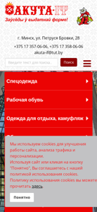 | AI-анализ | This online resource, titled 'Спецодежда летняя и зимняя, рабочая одежда мужская и женская купить в Минске по доступной цене, оптом и в розницу | АКУТА-ИФ', offers specialized clothing for sale in Minsk, Belarus. The website provides detailed descriptions and photos of the merchandise, which includes summer and winter workwear for men and women, gloves, protective gear, and various types of footwear. The keywords suggest that the store also sells medical uniforms, uniforms for service industries, and uniforms for protection and cooking professions. Additionally, there are categories for one-time use clothing, protective headgear, and footwear for leisure activities such as hunting, fishing, and camping. The store's address, phone numbers, and email are listed in the |