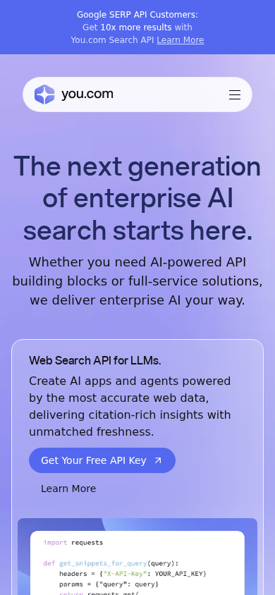 | SEO-описание | From APIs to full-service support, You.com empowers every business to build secure, scalable, and trustworthy AI apps and agents — all with complete control. |