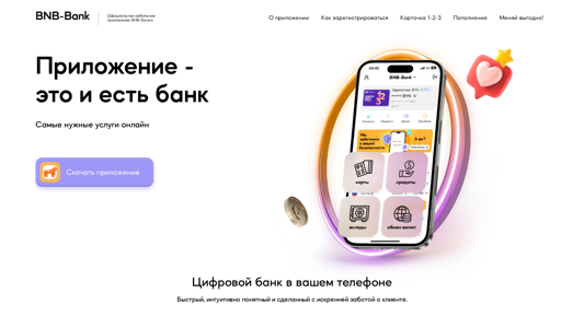 | AI-анализ | The web project "BNB-Bank | Мобильное приложение БНБ-Банка" is the official mobile application of BNB-Bank. The application offers various online banking services, including currency exchange, access to all bank products, and daily transactions. Users can register by following a three-step process: downloading and installing the app, registering through the MSI system, and receiving a welcome message upon completion. Key features include a digital wallet with a real-manebek (cashback), high monthly manebek (cashback) rates, partnerships with Apple Pay, Samsung Pay, and Swoo Pay, and the ability to issue both digital and plastic cards. The app aims to make banking more convenient and accessible through its user-friendly design and quick registration process. |