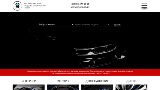 | AI-анализ | The website is an auto parts reseller for BMW cars located in Minsk, Belarus. It specializes in selling used BMW parts and offers vehicles from Europe, England, and the United States. The homepage has a menu for users to select a model, and the top words indicate various BMW models for sale. The title and description contain keywords related to BMW auto dismantling, used parts, and sales in Minsk. The website also provides contact information. |