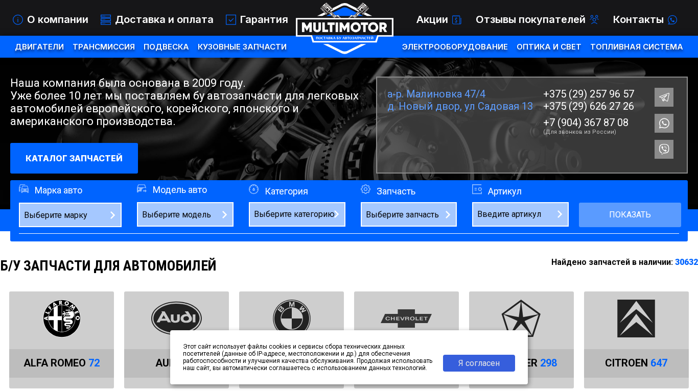 | SEO-описание | Разборка авто в Минске: MultiMotor.by. 🔧 Цены на б/у автозапчасти ниже рыночных. ✅ Гарантия, возврат и обмен товара. ✅ Система скидок для постоянных клиентов |
