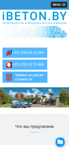 | SEO-описание | Производство бетона и растворов в Минске. Доставка миксерами и самосвалами. Производство бетонных работ |