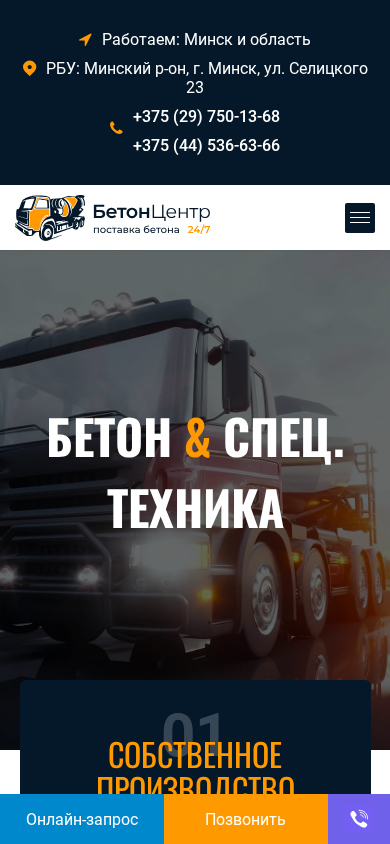 | SEO-описание | Купить бетон с доставкой по Минску и Минской области. Без посредников. Собственное производство. Все документы качества. Доставим быстро. Свой автопарк. Звоните! |