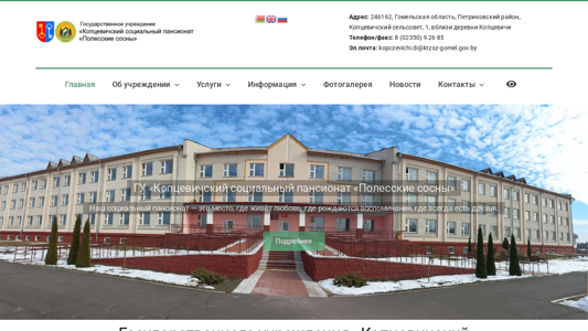 | Название / Заголовок | Главная - Государственное учреждение «Копцевичский социальный пансионат «Полесские сосны» |