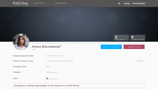| AI-анализ | The website of photographer Alena Maslovskaya from Minsk, Belarus. The site features photography in the "New Year's Session" category. Photographer Alena Maslovskaya specializes in children and family shoots, adding a touch of magic! No pricing or contact information is provided. |