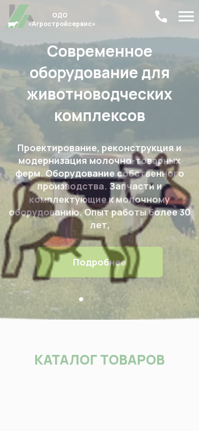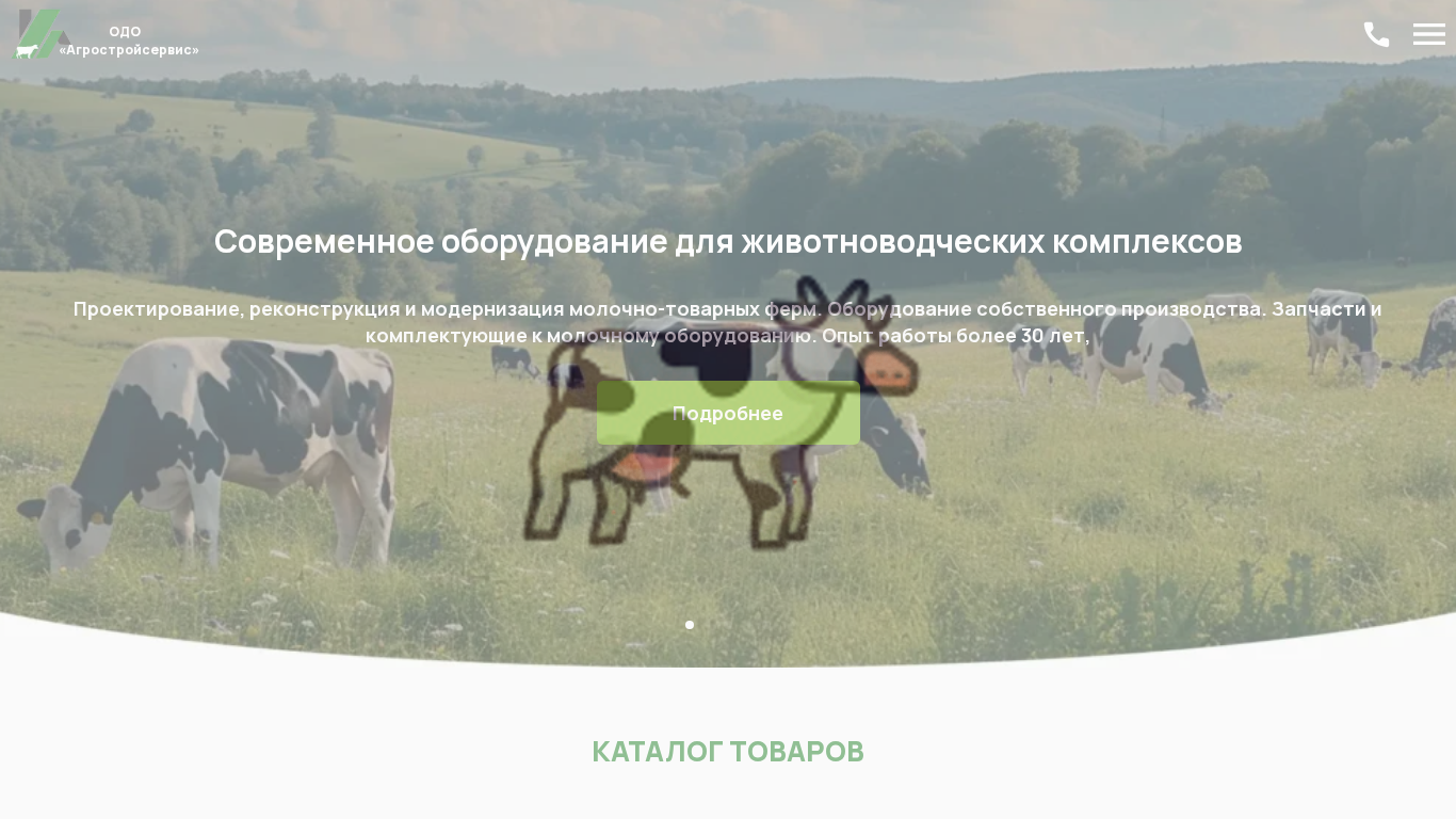 | AI-анализ | --- The web project "ОДО «Агростройсервис»" is a catalog for agricultural equipment and farming supplies. Keywords related to the content include 'оборудование' (equipment), 'ферм' (farms), 'запасные' and 'части' (spare parts), 'монтаж' (installation), 'животноводческих' (livestock), 'шторы' (curtains), 'стойловое' (stall), 'узнать' (to find out), 'больше' (more), 'коньки' (hooves), 'оборудования' (equipment), 'реконструкция' (reconstruction), 'модернизация' (modernization), 'поликарбоната' (polycarbonate), 'от |