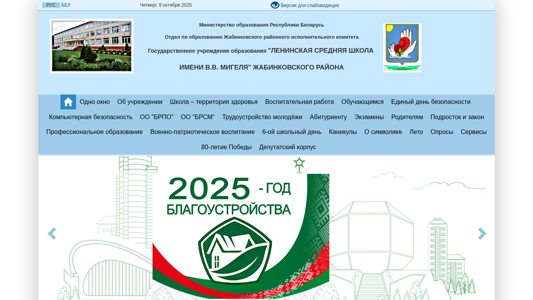 | AI-анализ | --- The website is for Leninsky Secondary School, an educational institution in Belarus, specifically located in the Zhabinka District. The main topics covered on the site include the school's schedule, organizational information, and news. Keywords associated with the site include 'education', 'reading', 'work', 'news', 'Republic of Belarus', 'Belarus', 'calendar', 'schedule', 'school', 'organizations', 'institutions', 'students', 'safety', 'Brestskoy', '2024', and 'events'. The site offers one main page with various sections, including an electronic application, contact information, and a public relations page. The school's management hours and modes of operation are also provided. The site is managed by the Ministry of Education of the Republic of Belarus and the Zhabinko District Executive Committee. |