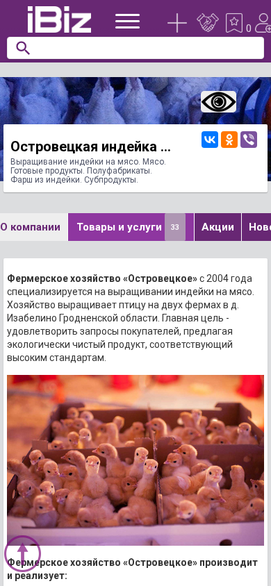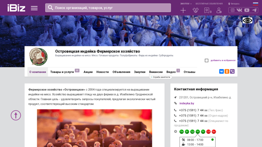 | Название / Заголовок | Островецкая индейка Фермерское хозяйство - Выращивание индейки на мясо. Мясо. Готовые продукты. Полуфабрикаты. Фарш из индейки. Субпродукты.. 231201, , Изабелино д. |