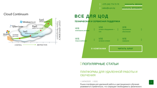 | AI-анализ | --- This website is the homepage of a data center solutions provider named ЦОД (translated as "Data Center" in English). The company offers server room solutions, networking, energy supply, software, network equipment, and engineering services. They provide technical and service support for all their offerings. The website features a blog and an option to download a brochure. The blog covers topics related to remote work and education platforms, network infrastructure, and data center solutions. The company works with Microsoft as a provider and promotes their communication platform MS Teams for team collaboration, file sharing, and video conferencing. The website also mentions the importance of optical switching systems, sound systems, and LED screens in data centers. The contact information for sales inquiries is provided. |