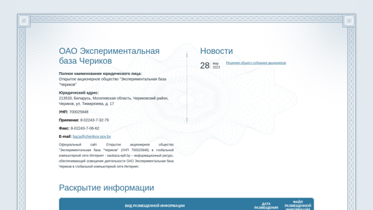 | Название / Заголовок | Экспериментальная база Чериков ОАО |