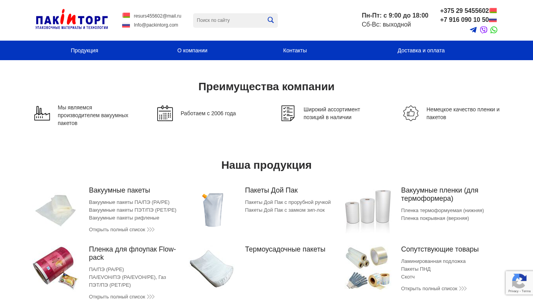 AI-анализ | This website is a vendor of vacuum packaging products based in Minsk, Belarus. The company is both a manufacturer and a professional supplier of packaging materials. The title of the website is "Production and Sale of Vacuum Packaging at Low Prices in Minsk" and the description mentions a large assortment of vacuum packaging products available in Minsk. Keywords related to vacuum packaging, packaging materials, and the city of Minsk are prominent in the data. The top words include "пакеты" (packets) and "вакуумные" (vacuum) with 23 and 14 occurrences, respectively. The website offers a range of vacuum packaging products including those made of PVC and PET, as well as thermoformed packages and accessories such as laminated bases and closures. The company has been in operation since 20 |