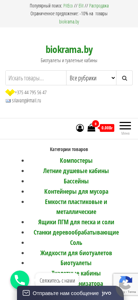 | AI-анализ | This website, biokrama.by, is an e-commerce platform selling various types of sanitation and construction-related products. The titles of its webpages include "Главная" (Home) and "Каталог товаров" (Catalog of Goods). The description tag mentions "Биотуалеты и туалетные кабины" (Biotolets and Toilet Cabins), "Компостеры" (Composters), "Летние душевые кабины" (Summer Shower Cabins), "Бассейны" (Pools), and "Контейнеры для мусора" (Garbage Containers). The top keywords include "распродажа" (sale), "корзину" (cart), "биотуалеты" (biotolets), "био |