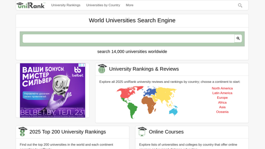 | SEO-описание | Compare university rankings 2025 across 200 countries. Search 14,000+ universities, find top colleges by region, and explore higher education programs worldwide. Free university search engine since 2005. |