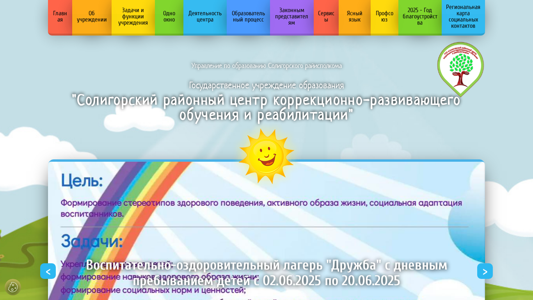 | AI-анализ | The web project "Солигорский районный центр коррекционно-развивающего обучения и реабилитации" (CKROiR) is a regional educational institution dedicated to corrective and developmental education and rehabilitation in Soligorsky District, Belarus. The website provides information about the center's administration, social-psychological services, normative legal framework, and structure. Users can find news, an interactive map, and a photo gallery. The center's mission, tasks, and functions are outlined, along with details on admission to special education, contact information, and administrative procedures. Popular requests and links to higher-level organizations are also included. The site features sections on educational processes, services for parents and guardians, and various committees. The center's involvement in projects like "Ранняя комплексная помощь |