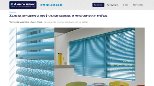 | SEO-описание | Частное предприятие «Амиго плюс» - производство и монтаж всех видов жалюзи с 2002г. |